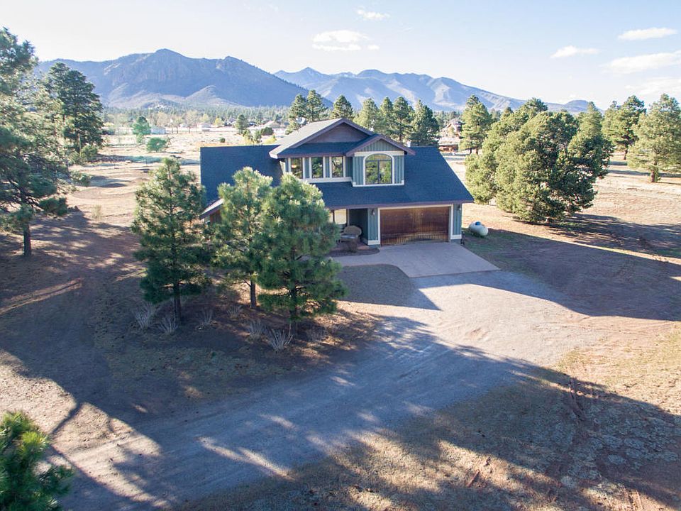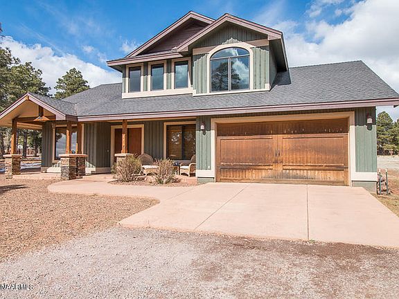 From the time you see this property you will be impressed with the curb appeal, charm, and warmth of this home. The front porch invites you to pause and enjoy the surroundings of Ponderosa Pines. This 2647 sq. ft. home offers 4 bedrooms, with a potential 5th bedroom and 2.75 bathrooms. Inside is brand new carpeting and interior paint. With warm stained concrete floors, 7 zone in-floor radiant heating system, large fireplace and open concept looking at the San Francisco Peaks and Mt Elden. The quality of the wood trimmed windows is indicative of the pride of ownership. There is a spacious heated workshop or private office. The fully fenced property includes a barn, corral, shed embracing this 2.33 acre home.