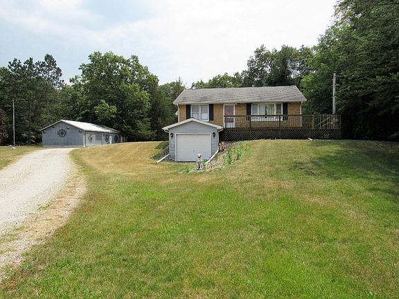 Vintage charm on a beautiful wooded 4 acre lot with a large pole barn. This ranch with a full basement has a great floorplan and lots of room for storage. Enjoy the eat-in kitchen, large living room, and hardwood floors in the bedrooms. Access the 1 car garage through the basement. The pole barn offers sliding 8 foot doors, and a large portion has concrete flooring with a drain. The woods are full of wildlife, including deer, and there is plenty of room for your outdoor hobbies. This home has been lovingly cared for. Make an appointment to see this beautiful property for yourself.