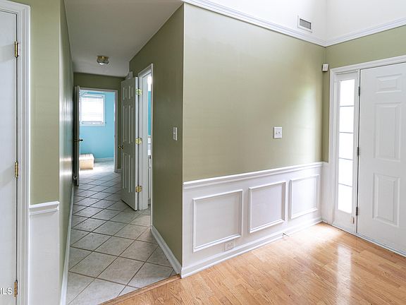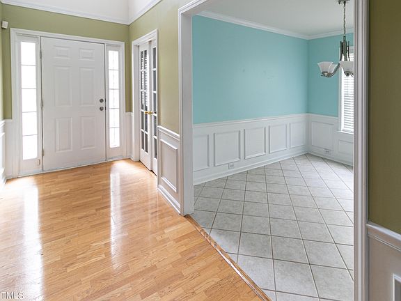 Beautiful home in great Riverside subdivision! Features hardwood and tile floors throughout the main level, 2 story foyer and family room, crown molding and wainscoting in dining area, bay window in office and additional storage under stairs. Kitchen with solid surface countertops, stainless steel appliances, tile floor, brushed nickel fixtures, white raised panel cabinets and listello/mosaic backsplash. Main bedroom with crown molding, cathedral ceiling and sitting area. Dual vanity, garden tub, separate shower and walk-in closet in main bathroom. Fenced-in backyard, raised deck and patio. New water heater (Nov 2022), a central hard water filter (2022), a new roof (March 2020) and new HVAC (2018). Convenient to Capital Blvd, I-540, Triangle Town Center, Wake Tech and restaurants!