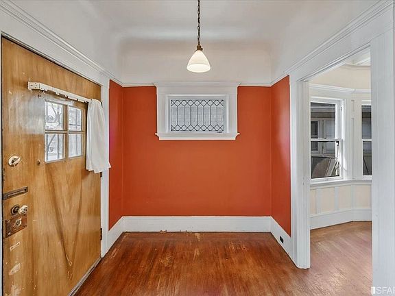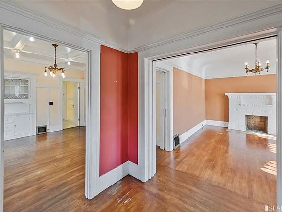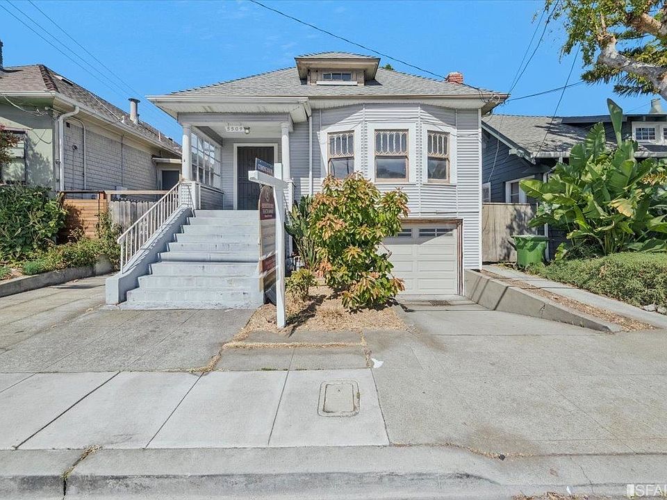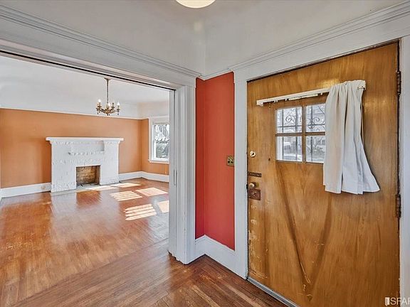 Charming Fully detached home with large front porch, formal entry, deep front living room with fireplace, formal dining room with box beam ceilings and built in china cabinet. The two spacious bedrooms share a large bath with clawfoot tub and white tile. Likely hardwood beneath the carpet. Hardwood floors in most of home. There is a large kitchen with scullery nook plus a laundry room which leads to a deck overlooking the quiet yard. Downstairs the grade level is full length of the home and can park 2 cars with a workshop. There is also plenty of potential with an unfinished room with door to the backyard. The lower evel is the full length of the upstairs and is a perfect space for a workshop, storage, additional living areas, 2nd bath or anything you can imagine! Home has been in the family for many years and needs TLC. Great opportunity in this solid home with spacious bones.