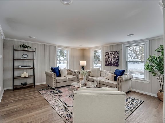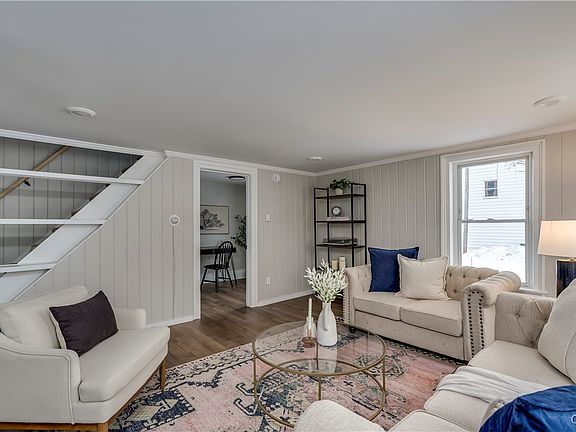 Inside, you’ll find modern updates throughout, including new flooring, fresh paint, a brand-new natural gas furnace, and a water heater. For your convenience, the home also features electric baseboard heat as a backup. The kitchen has been completely transformed with a stunning pine ceiling, updated cabinets, open shelving, and sleek butcher block countertops. The main level offers two bedrooms—one off the kitchen and another staged as an office off the living room. Upstairs, a third bedroom is accompanied by a cozy landing area, perfect for a small office or reading nook. The bathroom, located off the dining room, features a stylish new vanity, fixtures, and toilet, with a separate washroom right next door.