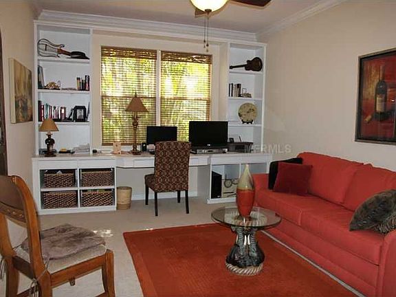 Place this exceptional, maintenance free, former model home at the top of your list. Located in a beautiful, friendly, gated enclave of homes with great amenities, such as boat docks, kayak launch, nature and walking trails, fishing, clubhouse, fitness center and pool, Pat Neal is the builder and took special care to preserve nature. Built in 2005, this exceptional home has 11-14 ft ceilings and 8 ft tall interior doors, double pane windows, 12 seer air unit, laundry room with sink, a large eat-in kitchen, dining room, great room, a den/office with built in desk , two baths, two car garage. Kitchen has high quality 42" maple cabinets and granite counter tops. There is crown molding throughout the living areas. Recent additions include new interior paint, carpet, crown molding, ceiling fans, gutters and more .This is a well-built, good quality home with many builder upgrades. Spotless .fully furnished and ready to go Move-in condition. Not a short-sale. DON'T MISS THIS ONE OF A KIND COMMUNITY WITH GREAT AMENITIES. Boat docks are available located on the private Braden River.