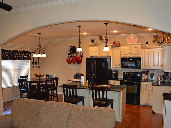 Modern feel with a very open living area. Split bedroom layout with a large back porch.