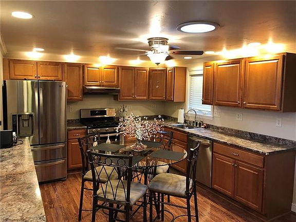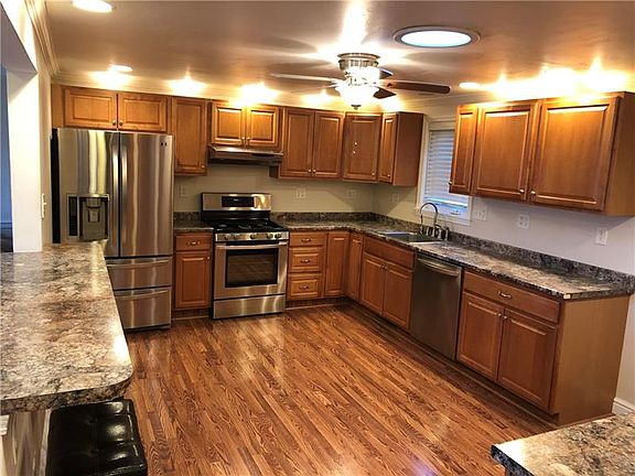 Absolutely stunning raised ranch home in desirable location near Elm Leaf park & Baldwin Municipal building, with meticulous attention to detail throughout. This mint condition move-in ready 2 bedroom 2 bath brick home with finished basement, updated roof, windows, and electrical system boasts a large eat in kitchen with maple cabinets, newer stainless steel appliances, recessed lighting, crown molding, dozens of cabinets with above cabinet lighting, pristine flooring, and peninsula with open floor plan into the living room. The beautifully landscaped yard leads to a private side patio with newer concrete and new vinyl pergola and onto the large unique covered back patio with pristine hot tub and wood burning fireplace. Additional enhanced amenities include 2 fully remodeled bathrooms (one on each floor of the home) another high end wood burning stove in the game room, front load washer and dryer, and a rare governor's driveway which provides plenty of off street parking. Perfect 10!