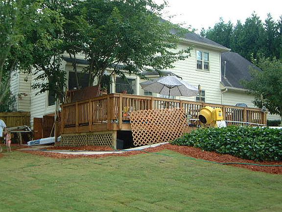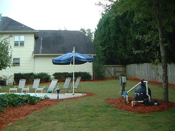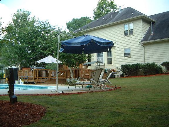 16 x 32 pool, diving board, new liner, large entertainment deck adjacent to pool, fully fenced yard, recent replacement of HVAC units, gas-log fireplace in family room, over-sized shower in Master, fully finished Bonus room can serve as 4th bedroom.laminate floors in bedrooms and bonus room, no HOA dues,
