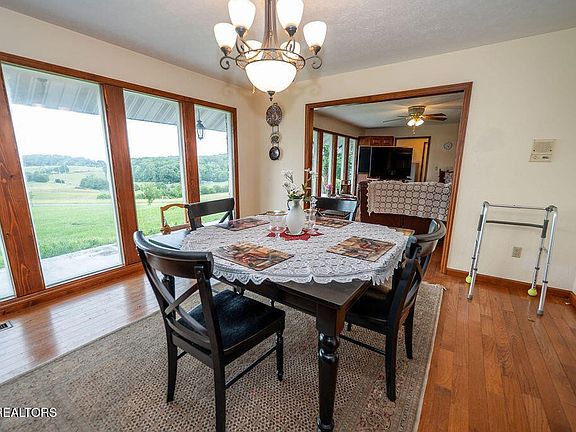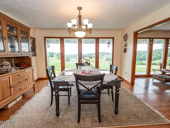 Peer through the floor-to-ceiling windows to enjoy the quiet serenity among spectacular views of East Tennessee's majestic rolling hills. Situated on over 2.6 acres in Kodak, this all-brick basement-rancher is less than 10 minutes away from boating & camping on Douglas Lake, as well as 10 minutes from the Sevierville exit on I-40. On the main level, follow the hardwood floors throughout and you'll find 3 bedrooms, an office, 2 full bathrooms, the laundry room, and a spacious living room (with zero-burn log stone fireplace) that flows into the kitchen, dining room, and sunroom. Great for the entertainer and there's plenty of room to have large gatherings. Guests will enjoy the sun room, the expansive 40 x 20 deck, and the concrete patio. The downstairs rec-room is large enough to have game night full of pool tables, ping-pong, and all the fun stuff. Top it all off with a 2 car garage in the basement and a 2-car carport on the main level, plus a small red barn in the back yard. By golly, this is the one!