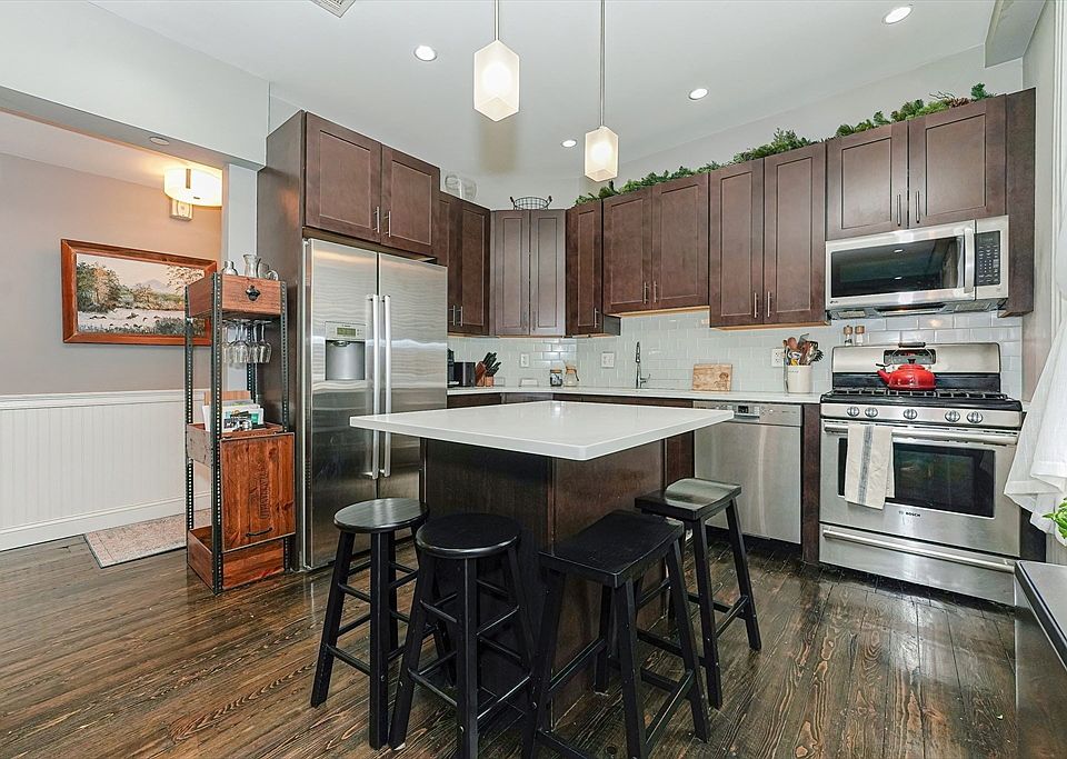 Welcome home! You will fall in love with this meticulously kept 3 bedroom/2 bathroom condominium from the moment you walk in. Situated on the second floor of a brownstone building, in the desirable east side of South Boston, this residence has everything you're looking for. A large open kitchen/living layout with oversized windows throughout allowing for a tremendous amount of natural sunlight! Beautiful espresso stained hardwood floors, maple cabinetry, white quartz countertops, and contemporary bathroom finishes, including a huge en-suite master bathroom and a 50 SF walk-in closet. On the other side of this floor through unit, you will find a 2nd bedroom that is larger than most - a perfect set up for a guest room, an office, and more! The 3rd bedroom has a queen sized bed exemplifying the true size of this property. Enjoy your private roof deck with harbor views! Other highlights include central air, in-unit laundry and a large storage unit. Don't miss out on this rare home!
