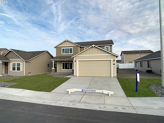 LOT:LE47 - New construction 2386 SQFT two level home. 4 bedroom 2.5 bath with luxurious primary suite with freestanding soaking tub, shower and walk-in closet. Deluxe chef's kitchen with quartz counters, pantry, island, dishwasher and 5 burner stainless steel built-in gas range. The Thielsen in the desirable Legacy neighborhood in Hermiston OR. Built by award winning builder MonteVista Homes. Great room, spacious loft/bonus room, 95% high efficiency gas forced air heating, air conditioning, gas fireplace and covered patio.