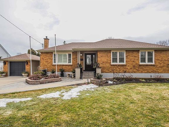 This home has updates Galore! Top notch high end finishes top to bottom! Open concept 3 bathrooms and 2 full kitchens, sits on a 98 X 207 lot with a Detached Garage and parking for 7 Vehicles. The oversized backyard features 2 sheds, a playground and a beautiful composite deck with walkouts from the home and attached Sunroom. Over a total of 2000 sq ft. On both levels, with a Master Bedroom, walk in closet and ensuite. Living and Dining area encompass a dream kitchen complete with High End Appliances, island, granite countertops, lots of cupboard space with lighting. The rest of the main floor includes a bedroom, a bathroom with shower as well as a full laundry room. The basement features 2 generous rooms being used as bedrooms, a bathroom with shower, full kitchen, living and dining area, pantry and cold room. Digital Wall Entertainment Panels and speakers throughout the home. All measurements are approximate.