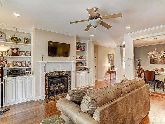 Immaculate & move in ready ranch with 3rd bedroom + full bath on 2nd floor. Open floor plan. Hardwoods throughout 1st floor. Plantation shutters. Spacious family room features built-ins & gas log fireplace. Formal dining rm. Bright & open kitchen includes granite tops, center island, s/s appliances (gas range) & tile backsplash. Large master suite offers garden tub with separate shower & WIC. Huge screened porch. Fenced backyard w/ patio & wooded views! Oversized 2 car garage. Convenient Fuquay location.
