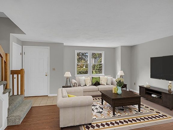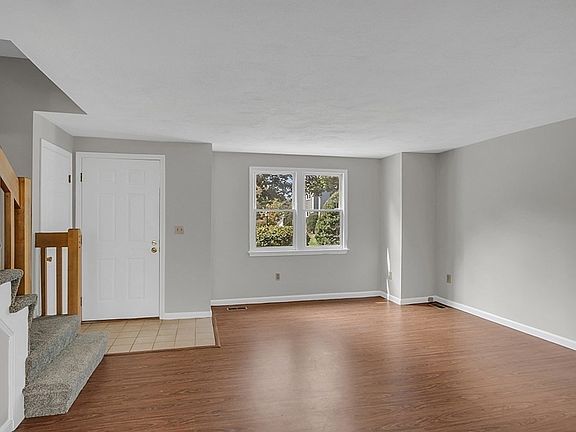Welcome to the desirable Wentworth Estates! Move right in! Featuring fresh paint & new flooring through most, the layout is great for entertaining. Open concept first floor- Dining Area is open to both Kitchen 7 the spacious Living Room-great for entertaining. The newer glass sliders gain access to your private balcony/deck, where you can enjoy your morning coffee or relax with a beverage at the end of the day. A half bath rounds out this level. Upstairs are 2 generously sized bedrooms, with new carpets & full bath. The primary bedroom has cathedral ceilings with stairs to a 3rd level loft with skylight - perfect space for an office, study or playroom and additional storage. Lower level has access to garage and exterior and a separate laundry room. Guest parking at the top center of the complex while the owner parking is around back and tandem to the 1 car garage Super convenient location & the complex allows pets- see rules & regs. Offer deadline 10/1 at 5PM. Respnse by 10/2 evening