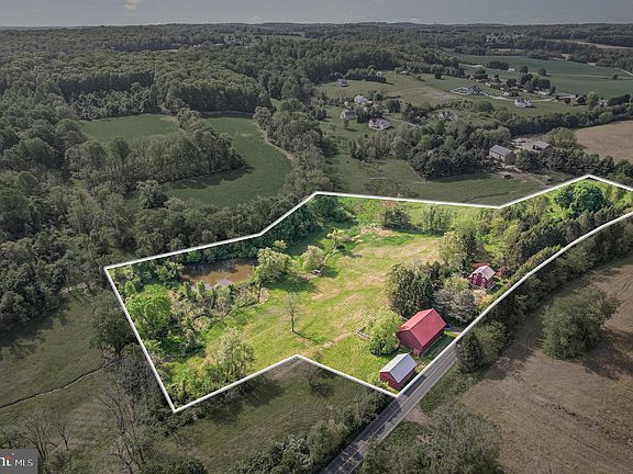 Magnificent property featuring 6+ acres of green pastures, a pond and a winding creek. The impressive bank barn has a fenced paddock area to corral the animals. There’s also an equipment/tractor shed, summer house and tool shed for all your working needs. Beautiful blooming trees, mature hostas & boxwoods, mulched flower beds, and brick walkways. The 3-story farmhouse has been updated over the years with replacement windows (2017), a metal roof (2018), stucco over the brick exterior (2018) and replacement decking (2019). It once may have been 3 bedrooms, but now has 2 bedrooms each with its own walk-in closet. Laundry is on the bedroom level. The condition of the hardwood floors under the carpet is unknown. Back deck and patio overlook the pasture. Zoning district is Farming; consult West Manheim Twp for possible uses. Close to MD/PA line.