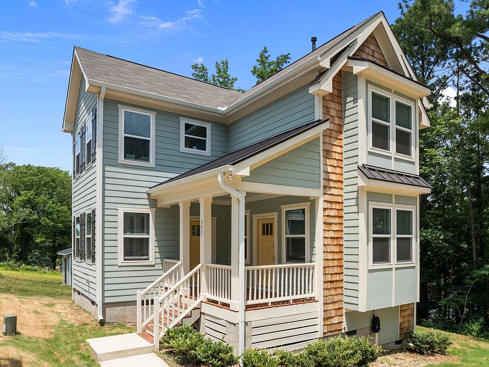 Why settle for a 1-bedroom condo or townhouse when you can rent your own 2-bedroom single-family home? This modern 2024-built home offers the style and convenience of a condo or townhouse but with no shared walls, no HOA fees, and a small yard. Step onto the charming covered front porch with dual entryways and fall in love with the open, light-filled design. One entry leads into a sleek, modern kitchen with a center island, quartz countertops, stainless steel appliances, and ample cabinetry, perfect for cooking or entertaining. The second door opens to a bright and spacious living room, offering a warm and inviting flow throughout the main level. Enjoy meals by the cozy fireplace or create a flexible dining/workspace area, all with durable luxury vinyl plank flooring. Upstairs, you'll find two private bedrooms, each with its own en-suite bathroom, ideal for roommates, guests, or a home office. Upgraded wood shelving in the closets, convenient upstairs laundry, plenty of parking, and a usable yard make everyday living easy and comfortable. Located just 13 minutes from Southpoint Mall, 9 minutes to Downtown Durham, and 18 minutes to RDU! Some pets are allowed but there are pet restrictions.