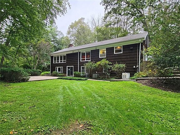 Located on a quiet street in Greenfield Hill, this home was meticulously maintained and cared for by the original owner. Walking through the double door entry, you are welcomed in to a wide foyer open to a wall of windows in the living and dining rooms. The living room over looks the private back yard and has a wood burning fireplace and is open to the dining room. The eat-in kitchen is located adjacent to the dining room. The main level also offers a home office or den, a master bedroom with full bath and two more bedrooms and a hall bath. The lower level has a large family room with fireplace, bar, half bath, wine cellar and sliding glass door to a patio. There are also two additional storage rooms. The home needs updating but has great bones. Although there is a steam on the property, it is not in a flood zone. Click on the virtual tour link.