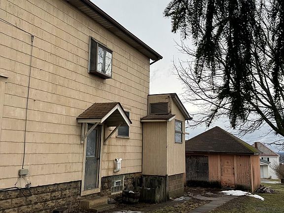 3 Bedroom, 1 Bath Stratolite Sided 2-Story in need of TLC, failing roof has brought down several ceilings, Fireplace w/ built-in bookcases, eat-in kitchen, Large Rear Shed/Workshop, Large Yard... worth the look!