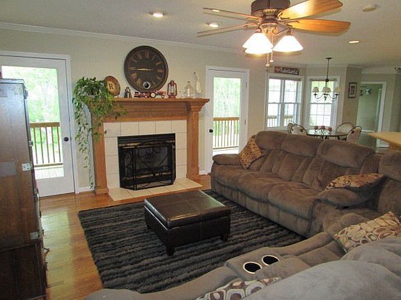 Immaculate 4 bedroom 3 bath home with lots of character and privacy. This property is a true find for anyone wanting a large home in the country. Home has hardwood floors, french doors opening into dining room from the entrance foyer, great room with doors leading to the back deck, 1st floor master with large bath containing a separate tub and shower, double sinks and walk in closet. Upstairs you will find a private family room with vaulted ceilings and the 4th bedroom. Outside you have a paved driveway, lots of new landscaping, brick front porch and patio, shed with a chicken coop and an outside wood furnace. Call today before this one is gone. Grey building in back yard doesn't convey.