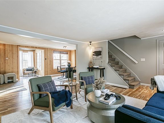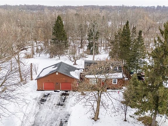 Don't miss this opportunity to sit on your deck overlooking your scenic 2.06 acre wooded lot with a creek winding through it or sit around the bonfire pit on a summer night. Schedule your appointment today to tour this 2 bedroom & 1 1/2 bath cedar sided Cape Cod. Included is the home on a .46 acre lot and an adjoining 1.6 acre lot with asphalt driveway and parking area. The open floor plan home has a morning room/office with a door that leads to the deck. The kitchen has updated appliances(dishwasher 2024, freestanding stove & refrigerator 2021), copper farm sink, and a second wall oven. The first floor full bath was completely remodeled in 2021 and includes 1 of 2 sets of washer and dryers(another set in basement). Huge primary bedroom with double closets. If it's a garage you are looking for this home has a 816 sq. ft. insulated and heated garage with overhead storage and sub panel with 220 volt outlet. Walk out of the garage or morning room on to the new(2023) 350 sq. ft. deck with stairs to the rear yard. 50 year GAF System Plus tear off roof with transferable warranty 2017. Tankless water heater. 150 amp electric service. Walk out above grade basement. Fairport electric and schools. Delayed negotiations until Tuesday, March 4th at noon.