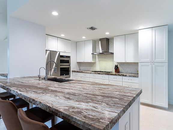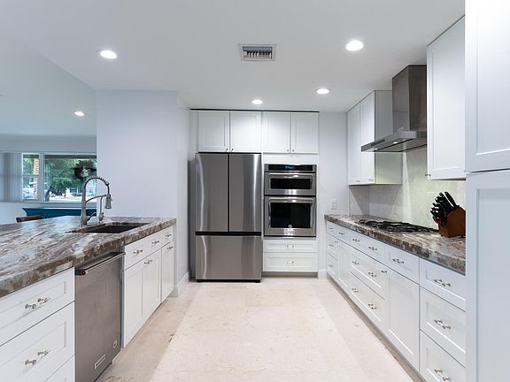 Completely renovated home in the Village of North Palm Beach.3 bedroom 2 bath with 2 car garage. and pool/spa. Total sq. ft. 3,080 Living sq. ft. 2,474. Fully fenced back yard. Shellstone floors in all living areas and kitchen, wood floors in bedrooms. All impact windows. New electric, New plumbing. Newer Roof,Recessed lighting throughout. HikVision security system, Newly painted.New Dolphin Nautilus Pool cleaner, New tinted windows, Upgraded lighting, Natural gas, Tankless water heater, full house generator, Gas stub for summer kitchen. Circular driveway. Covered exterior foyer,Living room has plenty of windows for natural light and bar area with built in beverage cooler. Contemporary kitchen has quartzite counter tops with full herringbone marble backsplash, a full comple of stainless steel appliances including gas stove, hood, double wall oven with microwave, refrigerator, dishwasher and pantry. Comfortable sitting area has sliders to back patio. Dining area has sliders to lanai, pool/spa and backyard. Spacious family room has built in shelving, cabinetry and sliders to pool/sp and patio. Master bedroom, walk in closet with shelving, cabinetry, and private entry to pool/spa and backyard. Master bath has marble floors, double vanity with quartz counter tops, soaking tub, separate shower with seamless glass doors, and separate water closet. Guest bedrooms have reach in closets. Guest bath has tub/shower combo with glass doors and single vanity. Top load Electrolux washer and dryer Expansive patio has summer kitchen with and overlooks private back yard. Room for boat storage (11x45 ft). Close to North Palm Beach Country Club where you will enjoy the new 37,000 square foot clubhouse, restaurant, pool, tennis and renovated Jack Nicklaus Signature golf course. Close to major highways, shopping, fine dining, recreation and entertainment.