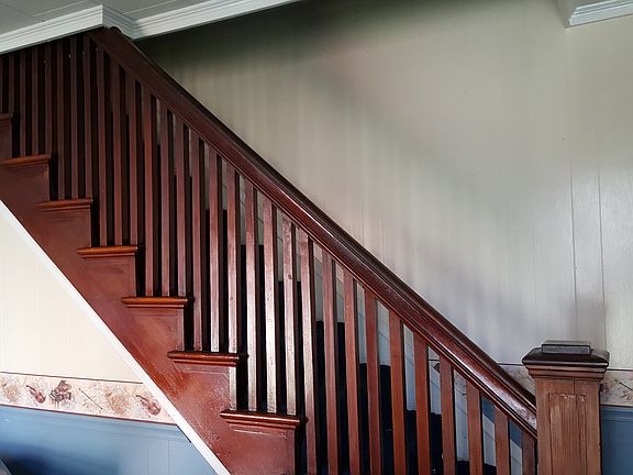 Very large home with fenced in yard and detached two car garage. Some very nice features like stained glass headway and windows. Huge stone front porch. Need some TLC but possibilities are endless.