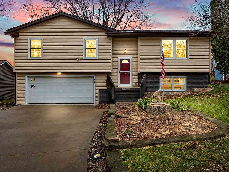 Welcome to this charming split foyer home that boasts meticulous maintenance and modern upgrades throughout. Step inside to find a warm and inviting family room featuring a cozy corner gas fireplace, perfect for gathering with loved ones on chilly evenings. The open kitchen is a chef's dream, complete with a breakfast bar, hickory cabinets, and GE brushed slate appliances. The main level also offers a spacious living room and family room with hardwood flooring. Plenty of natural light pours in through the many replaced windows and skylight. Venture downstairs to discover a lower level family room with daylight windows, providing additional space for relaxation or entertainment. You'll also find an extra-large finished storage area, ideal for organizing belongings with ease. This home has been thoughtfully updated with a newer roof, siding, water heater, and carpet in the master bedroom. The kitchen boasts newer tile flooring, while the fireplace surround has been enhanced with stylish stone accents. Additionally, the primary bathroom and shower have been beautifully updated, offering a luxurious retreat after a long day. Lower Level family room could be used as a 4th bedroom with full bath just around the corner. An oversized 2-car garage provides ample parking and storage space. Don't miss your chance to make this well-appointed home yours – schedule a showing today!