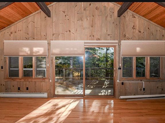 Exceptional renovation opportunity on Kearsarge Brook. This chalet-style home sits on 1.1 acres comprising two lots, offering privacy and natural beauty in the heart of North Conway Village. The property features natural woodwork throughout, granite countertops, and a stone fireplace that serves as the home's focal point. Two bedrooms and a full bath on the main level, plus a primary bedroom and bath upstairs. Additional amenities include a cedar sauna on the first floor and an expansive deck that overlooks Kearsarge brook. Set back from the road to ensure maximum privacy, this unique waterfront property presents an outstanding opportunity to create your dream mountain retreat while preserving its rustic charm and character. Ideally located close to skiing, shopping, and restaurants, offering the perfect blend for year around or vacation, convenient access to North Conway's premier recreational and dining destinations.