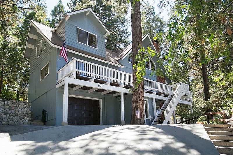 ~SOLD~ Lake Arrowhead home in great neighborhood with a fabulous backyard including a relaxing spa set among many tall cedar and pine trees~Fresh exterior paint and resurfaced decks~new carpet throughout~$15,000 in recent upgrades~open floor plan~master bedroom on the main level~2 fireplaces~living room,family room and loft area offer plenty of space for game room and office~3 bedrooms~2.5 bathrooms~hardwood floors~single car garage with loads of storage space~separate mud room entrance~