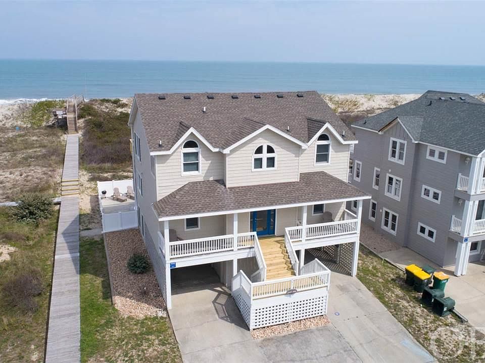 Good condition and stylish Oceanfront home, sitting on an elevated homesite, offering panoramic ocean views, great dune line, with a comfortable well thought-out floorplan, and high consistent rental income, year after year! Offering everything vacationers desire, this property, with it's combination of style, location, & features, has generated $133,628 owners rents in 2019 ($145k advertised rent), and as expected is already full booked for 2020!! This home is booked every week until 11/1/20 at this time, so perfect timing for a buyer to collect 2020 rents with no winter carrying costs! In good clean condition, this property is ready for immediate use and enjoyment, spring clean and spruce ups completed, with rents on the books for a new owner. The home sits on an elevated homesite, with lots of land Eastward of the private pool before the well established dune line, offers a wide gradual beach, and very importantly direct beach access via adjacent and connected community dune walkover. It doesn't get an closer from pool to beach, maybe 100' from pool to 'toes in the sand', without the maintenance responsibility of a private dune walkover. Great floorplan provides large, bright, open great room and living area, overlooking the ocean, with comfortable room for all, inside and out. Large upscale kitchen area with adjoining wet bar, mid level foyer, ground level rec room, 2 levels of rear decking, full front covered deck, comfortable bedrooms, 2 carports and plenty of parking, good sized private pool area with kiddie pool and hot tub. Wide open ocean views with all the protection one would want. Very tastefully remodeled, furnished, and updated in 2017/2018, providing a modern Model Home look. Really tastefully done. Unique granite counters, tile back splash, durable luxury vinyl tile / plank flooring in all common areas, stainless steel appliances, shiplap accents, built-in fireplace surround, and very attractive decor. Great location with low density beach, close to Harris Teeter and other shops, with community tennis courts. Updated, good quality, well cared for property. New 2020 oceanside deck boards, railings, and front stair treads, new roof in 2018, 2017 North and East facing high quality windows (12) and sliders (5) replaced. Rental income reports, expenses, and survey are included and in associated documents. Call agent for any help or assistance. This home will be a pleasure to show and to own.