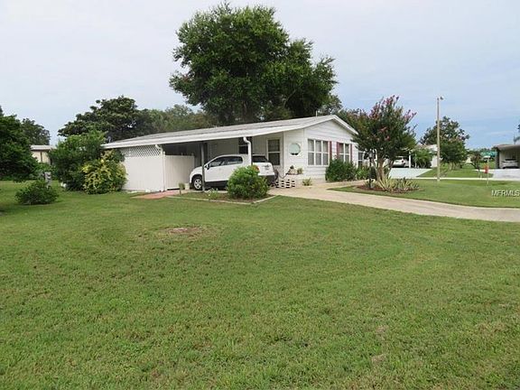 Cute as a button. This home shows pride of ownership from the current owner from the oversized manicured gardens of this corner lot to the well designed and neat interior of this pretty home. The carport functions both as a carport and outdoor work area behind the fenced area of the carport which also houses the utility shed which houses the washer and dryer. The owner has worked diligently over the years to update the home into this pretty property you will see as you enter the side into the formal dining room. It has laminate flooring throughout the bedrooms, living areas and kitchen for a modern feel and easy cleaning. The dining room has built-in cabinets to display your treasures and offers access to the hallway to the bedrooms and family bathroom. The master bedroom is at the end of the corridor and is very spacious with a large walk-in closet and wall to wall closet space along another wall in the bedroom. The second bedroom is also well proportioned with built in storage as well as closet space. The family bathroom has been renovated with new sink unit and flooring. Looking for lots of family room space, this is the home for you with a very larger and airy family room for you to enjoy. Off which is the pretty Florida room providing additional living space for you to enjoy. The kitchen has newer appliances and counter-top was replaced to update this area which also abuts the dinette area. This delightful house will make a wonderful primary or second home. Book your appointment today.