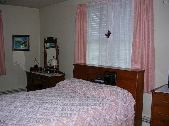 Not a drive by! Built for the ages and thoughtfully updated brick ranch on brilliant Lansing hillside,with winter lake views. Now used as a 2BR, but room off kitchen can be 3rd BR or formal dining. Assessment sq. footage does not reflect the 400 sq.ft. family room in basement. House has municipal H2O & septic-also has drilled well & spring for gardens, etc.WA/DR now located in heated garage, but lots of room to relocate in basement,which now houses pool table and workshop. Windows replaced, Weil McLain boiler & sidecar hot water heater, beautifully renovated galley kitchen w/top of line appliances.