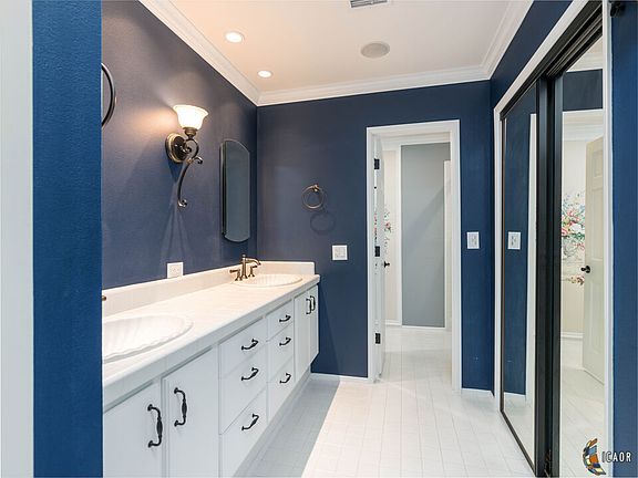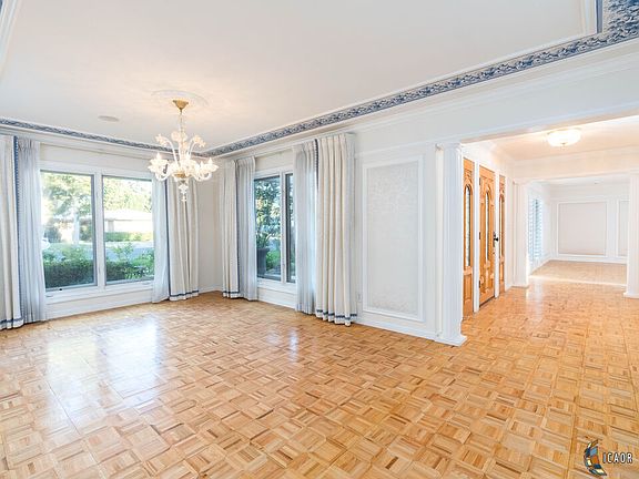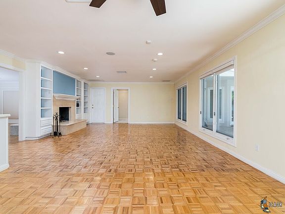 Stunning home in the heart of Brawley. This gorgeous ranch style home is situated on an extra large lot with mature trees, beautiful landscaping and a sparkling pool! The interior is tastefully decorated with classic parquet flooring and subtle colors. The kitchen is equipped with stainless steel double oven, a gas cook top , vented hood and refrigerator, and a butcher block island. The large open family room overlooks the pool with large dual paned windows and french doors, making the kitchen , breakfast area and family room always bright and cheerful. The back yard includes a covered patio with a full bathroom, a lovely fountain and of course the pool, all surround by a high block wall for privacy. The original floorplan was modified to make this home a 2 bedroom home with two spacious master suites, each with large ensuite bathrooms (both with jetted tubs and walk in showers) and walk in closets. If this doesn't suit your needs it could easily be converted back to a 3 or 4 bedroom home.