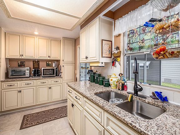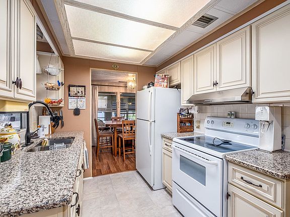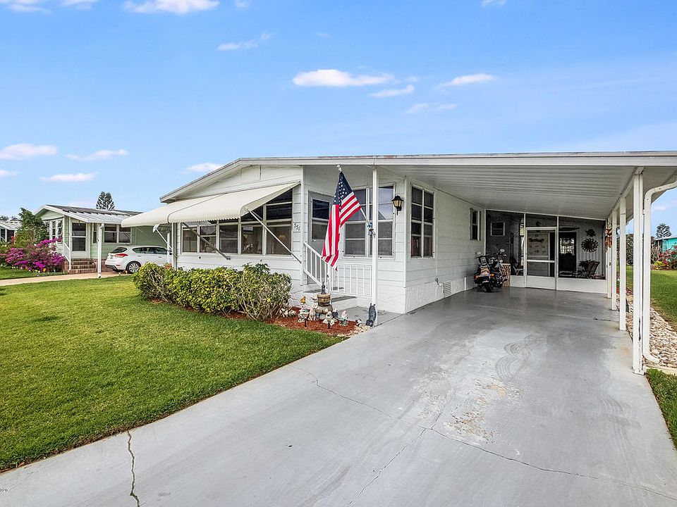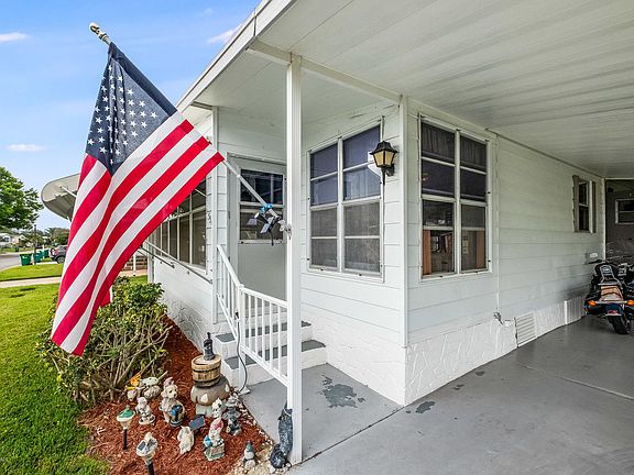 This adorable 2/2 in the great 55+ Community of Hollywood Estates is ready for new owners to love it. If you are looking for open spaces, plenty of storage and even a great area for entertaining here you have it. Home offers 2 bedrooms, 2 bathrooms, updated floors (including 3/4 inch plywood), paint, plumbing, roof 2013, AC 2013, Hot water heater 2013, Front sun room has tinted windows and insulated drop ceiling to name some of the resent updates . Your new home includes a over sized outbuilding with Laundry room and lots of storage!