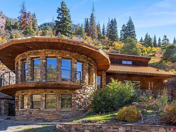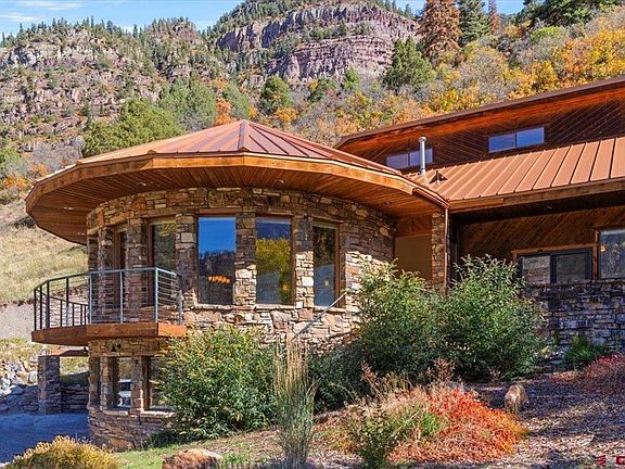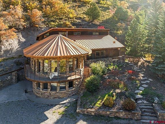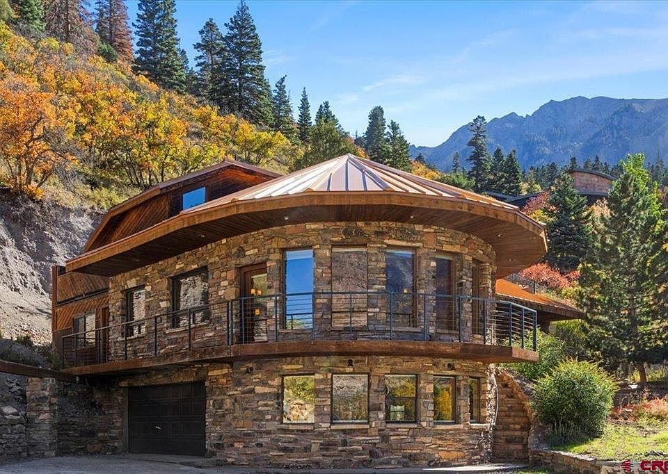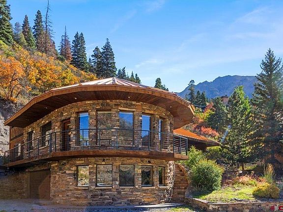 LOCATION IS PRIME FOR THIS beautiful home if you are looking for views. This Iconic home sits at the top of the world looking toward mountains in all directions and sits with an overview of the City of Ouray from inside and outside of the home. And yet, you are five minutes from downtown Ouray. Easily reconizable from downtown Ouray with it's unique architechural style, just waiting for you to move in. Surrounded by windows, the Living Room has beautiful Hickory floors carried out into the Dining Room and Kitchen. Kitchen has built in breakfast nook, all stainless appliances including double ovens, dishwasher, 5 burner cooktop, microwave and a large walk-in pantry. There are 3 levels in this home. The main floor where kitchen and living room are located also has a large office space with built in cabinets, just off of the laundry room with a 3/4 bath. The Washer and Dryer are included. Just around the corner you will find a 1/2 bath along with a large family room/den with a gas fireplace with granite and access to a small covered patio. One floor down is the large and very private Master bedroom also surrounded by windows with views, and a large full bath with soaking tub and separate steam shower, double vanity and huge walk-in closet. You can also access from this level the garage/workshop. One level up from the main level you will find an additional 4 bedrooms each with their own bathroom. There are patios and decks all around the home, including a hottub. There are two furnaces and the heat is gas forced air. While some renovations are currently being finished you will see the Newer roof on the home, new Marvin windows, new interior paint in some rooms, fixtures, etc. This house is one to put on your list to see, there are very few homes like it in Ouray. PLEASE NOTE: Previously the home was being sold with two vacant lots. Those lots are being subdivided from the home and sold seperately. Therefore, the price change is for the House only. Also some upgrades to the house are currently being made including interior paint, new carpet, new bathroom upstairs with glass shower door being installed and upgrade to patio and decking. The lot with the house will be approximately 1 acre total providing plenty of space for a new garage and large deck to be built by the new owner. Final Planning approval by the City of Ouray will be required prior to closing on the home.
