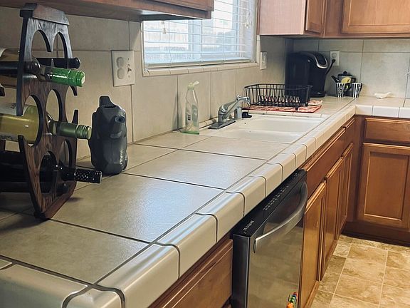 - Ceiling Fan(s), Ceramic Counters, Kitchen Island, Pantry, Tile Counters