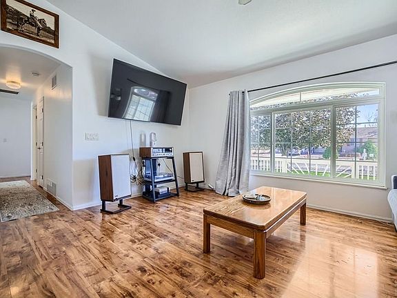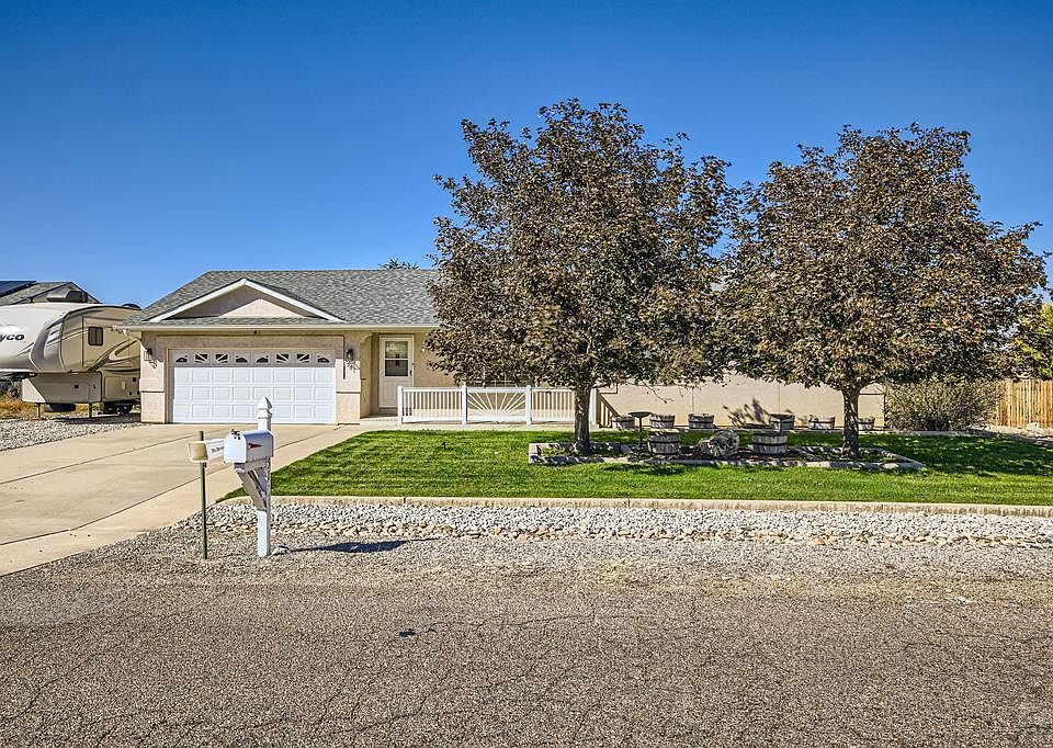 WELCOME HOME to this 3/2/2 in peaceful Pueblo West. This charming home lives larger than its 1236 square feet with an open floor plan, vaulted ceilings and lots of light. A lovely front yard greets you with mature landscaping, grass and bushes, with a sprinkler system to keep things green in the hot summers, and a fenced front patio for enjoying the sunny Colorado outdoors. Inside, a great room flows into the dining room and kitchen space, with large vinyl windows and patio door, and laundry off the kitchen. The entire interior has been freshly painted for a clean, bright look. Three comfortably-sized bedrooms and two baths are down the hall to the right, with new flooring throughout. The large backyard includes a large cement patio area, shaded in summer, and the yard is well!-maintained rock with room for all your hobbies and your toys, plus RV parking. This home is located in a quiet neighborhood minutes away from bike trails, 2 elementary schools, a community pool and golf course, and the north marina and swim beach of Pueblo Reservoir. Also close to shopping, grocery stores, restaurants and not far from CSU Pueblo. Come see this gem in Pueblo West and make it your own. WELCOME HOME!