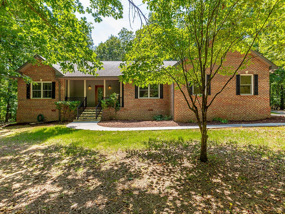 Two Guest Bedrooms share a spacious and pretty Guest Bath and the Master Suite is super sized with a large Sitting Space that opens to the back Deck and a beautiful, large Master Bath that features a jetted tub, separate shower, double vanity, water closet and huge walk-in closet. One of the best parts is the master closet joins the Laundry Room with space enough for a home management desk space. Two car garage and an actual staircase going to the attic storage. Brick and Vinyl one level living with 5 acres of privacy, 40 year Architectural Roof, HVAC new in May 2024, and only .2 mile to the nearest boat launch. This is the one you've been looking for! Don't wait!