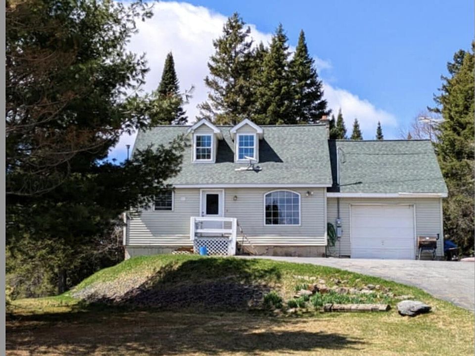 Finally! An affordable water front property! This cute cape sits back off the road, nestling amongst the trees. A private backyard for quiet rest. Beautiful front lawn that expands to the road yet the house sets safely back. This home also features a groomed path that takes you down to 50 feet of owned fish River waterfront. There is a place cleared for seating and a fire pit for night fires, memories and smore's The house offers a bedroom and laundry on the first floor and two bedrooms upstairs. Full basement with walk out sliding doors. More finished rooms can be added here. The start of a bathroom was installed. One car attached garage with entry to the home. Footing walls installed in back of the house with the intention of building on. Waiting there for expansion if wanted. Jump on this dream of a retreat home or a permanent dwelling and schedule your showing today!