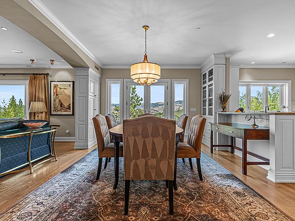 French provincial-inspired custom home located directly above Hald-Strawberry Park, just five minutes from Ashland's downtown plaza. Main level living room with integrated speakers, art lighting, gas fireplace, dining area with French doors to expansive view deck, gourmet kitchen with Electrolux Icon convection ovens and six-burner gas cooktop, powder room, media room, and office or guest bedroom with full ensuite bath. Spacious upper-level office, family room, and library with French doors to view balcony, gas fireplace, extensive custom built-in shelving. Primary bedroom with sitting area, two walk-in closets, and two full ensuite bathrooms with tiled showers, soaking tub, and sauna. Huge lower-level bonus room with washer, dryer, and utility sink. Detached three-car garage with attic storage. Landscaped grounds with mature trees, ornamental plantings, sunny gardening areas, grass lawn, stone and concrete patios. Inquire for details!