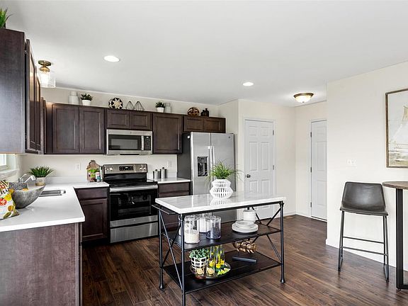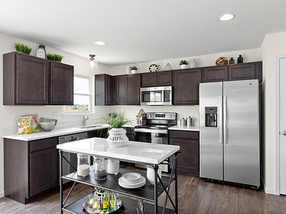McBride Homes Arlington Display Home for Sale! This two story home has 3 beds, 2.5 baths, and is move in ready now. Beautiful wood laminate flooring featured throughout the main level. Kitchen features level 4 rich wood cabinetry, quartz countertops, and stainless steel GE appliances with refrigerator included. Glass sliding door in dining area leading to composite deck. Half wall with stained stair cap at stairway to second level. Master bedroom features a walk in closet, ceiling fan, and adult height vanity plus walk in shower in master bath. Two additional bedrooms, full bath, and laundry room on second floor. White six panel doors, two car garage, and more! Commons at Charlestowne Landing is located next door to New Town, features common ground and beautiful lakes, and is included in the Orchard Farm School District.