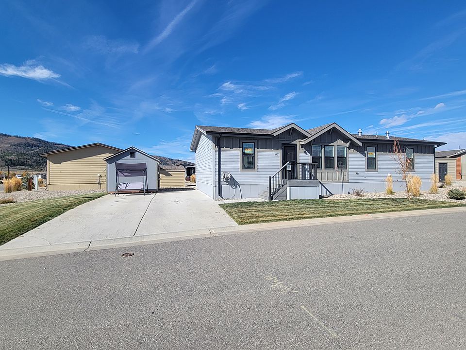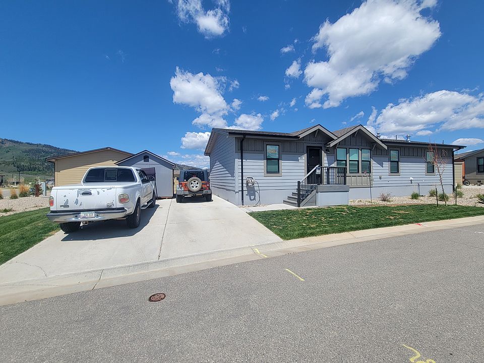 An attractive 2 bedroom, 2 bathroom home located on a corner site. With a large, open layout this home features an oversized kitchen with a ton of storage, a center island and matching Whirlpool appliances. There is a sliding glass door with a 6x8 deck off the dining room and the floorplan splits up the bedrooms allowing one on each end of the home, for extra privacy. The primary bedroom includes a spacious attached bathroom with a dual sink vanity, window bench, stand up shower with seating and separate toilet room. Both bedrooms have walk-in closets and have enough space to accommodate king size beds. For extra storage there is a hallway coat closet near the spare bedroom and a laundry room off the kitchen. Outside there is a non-potable irrigation system, a 10x12 shed with double doors and surrounding Rocky Mountain views with easy access to the Granby trails. Contact us today to schedule a tour. Please note- this home is lived in so we will need to schedule an appointment for the tour. 3rd party financing options are available, conditions and restrictions may apply and we offer equal housing opportunities.