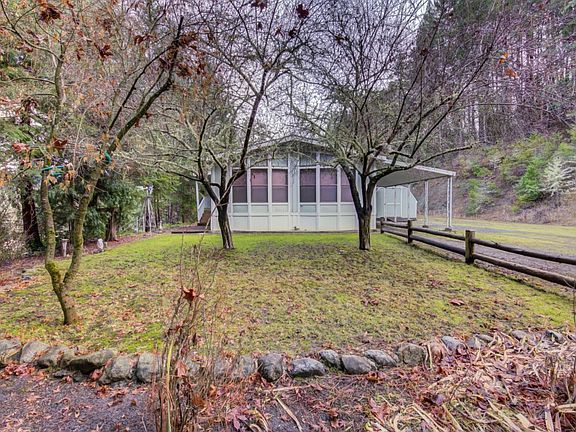 Nice Property in Sunny Valley! Large circular driveway takes you to the 1990 Manufactured home sitting on 5.19 acres. Home features 2 bedrooms, 2 bathrooms, approx.. 1152 sqft., Living room, dining area, kitchen including range/oven, dishwasher, refrigerator and lots of cabinets. Laundry room with washer and dryer included. Heat Pump. Attached Carport and a detached shed. Lots of parking and room for a shop, RV, etc... Property being sold ?AS-IS?.