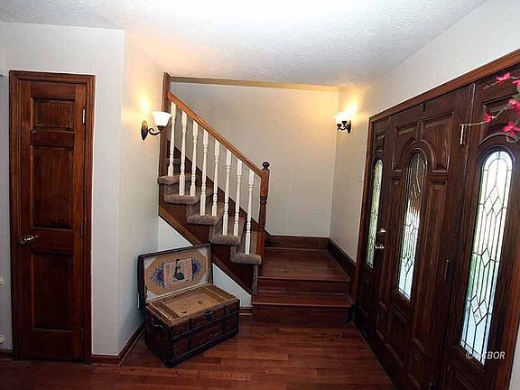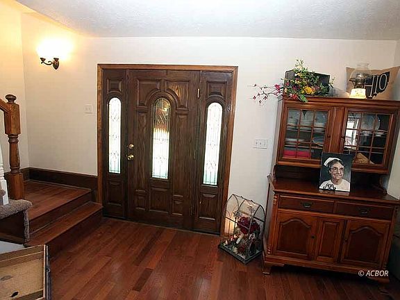 Lovely home featuring Great Room w/upper level loft overlooking this area. Formal DR plus breakfast nook off the K with an Island walnut cabinets, tile floor. Main BR w/Bath-jetted garden tub, shower, double vanity, 2nd BR and bath, laundry room on main level. Upper - Bonus room, 2 BRS, Bath. Several lovely wood floors throughout. Basement - FR, Rec Room, 2 BRs, bath, furnace/storage room. Covered front porch, 56' Back deck, 27" above ground pool, fire pit making this a great area for entertaining. 32x28 pole building w/concrete floor/electric/water. Two HPs-zoned up and down. Outside wood stove (2014) to save on heating costs. Good closets and storage throughout. Level lot. This property is worth taking time a look see for yourself with all the amenities this property has to offer!