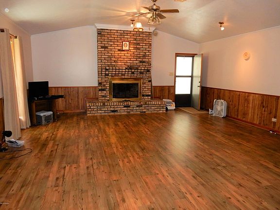 This home is Located in a peaceful country setting on 6.96 acres. Property is fenced for horses or cattle. It features a large living room area with a cozy fireplace, wood laminate floors throughout living area and bedrooms. Plenty of kitchen cabinet space and computer nook area. There is a small house located on the property which would make a great mother in law suite or outdoor kitchen area!