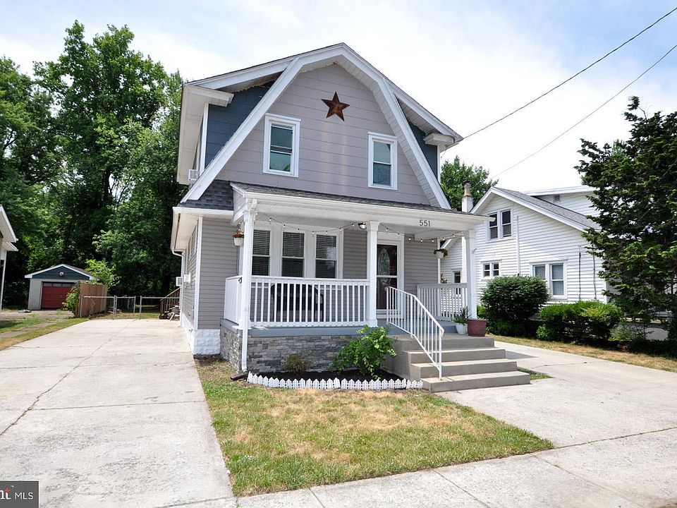 **Multiple offers - please submit best and final by Saturday 6/29, 5PM. Welcome home! This charming 3 bedroom, 1.5 bathroom home can be yours, in the Bellevue section of Cinnaminson. The lovely covered front porch has plenty of room for you to relax any time of the day, rain or shine! You have plenty of parking with two driveways, one on each side of the home. Inside, you'll find freshly painted walls throughout the home, new carpet, and new kitchen flooring! The living room has dimmable recessed lighting and a gas fireplace. Enjoy two dining areas, one in the dining room and one in the large, oversized kitchen! The kitchen hosts a ton of cabinet space, new flooring and a newer refrigerator (2022). A half bath is also on the first floor for your convenience! Off the dining room is an office with a closet for storage. Upstairs you will find three bedrooms, a hall cedar closet and a full updated bathroom! The basement hosts a partially finished space, as well as a workshop area and laundry area. Outside, enjoy the expansive backyard perfect for hosting, gardening, enjoying beautiful weather and much more!. The yard is fully fenced, has a shed and backs to a nature preserve! This property is being sold as-is with a 1 year American Home Shield home warranty offered to the buyer. Don't miss the chance to make this lovely home in Cinnaminson yours!