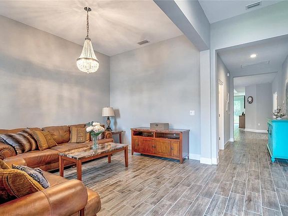 Move in ready this one year new home backs up to wooded conservation area with room to build a private pool. This exquisite home has 4 bedrooms 3.5 baths, an office, and a 3 car garage with a very flexible floor plan all on one level. Open floor plan is a great design, has tall ceilings, is light and bright, and has a very desirable color palette. Kitchen is open to the family room and dining areas and has a large island at counter height which is great for families or entertaining. At the rear of the home you'll find a master suite on one side and an in law suite on the other side. Secondary bedrooms share a jack & Jill bath with a living room across the hall. A half bath services guests. Located in the beautiful gated community of Oakleaf hammock in Ellenton enjoy several entrances with one entrance being right across from the elementary and middle schools. This is like a new home with the extras you don't get when you build. Community is convenient to I-75 and I-275 for access to Tampa, St Petersburg, Bradenton, and Sarasota. Each home benefits form the community's own irrigation system and lets not forget the great shopping nearby with the Ellenton Premium Outlet Mall.