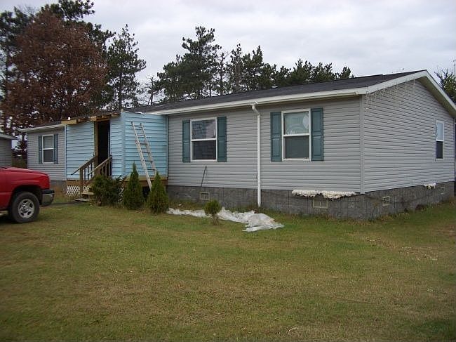 Large Ranch, 4 bedroom, 2 bath, 2005 Manufactured home on a 2 acre rural setting. Home has vaulted ceilings, island in kitchen, laundry room. Master bedroom with private bath & double sinks, walk-in closet. Home has 2 by 6 side walls. Front & back enclosed porch. Home is on a crawl space with cement skirling around the home. Detached 24 by 24, 2 car garage. Home is heated with a large outside wood stove, also has a furnace. 2 LP tanks 1 leased and 1 included.
