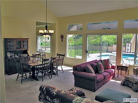 Single-level, pool home in East Yorba Linda's Bryant Ranch. Located on a cul-de-sac, this home offers 3 bedrooms and 2 baths; a bright, airy, island kitchen with granite counters, tumbled stone backsplash, walk-in pantry, and sunny breakfast nook. The family room features a fireplace, and sliding door to the side patio. Living room and formal dining area share views of the pool and backyard through large picture windows and sliding door. Master bedroom features large master bath/dressing area with deep soaking tub & separate stall shower; dual-sink vanity; walk-in closet, plus two additional closets. Cathedral ceilings in entryway, living room, kitchen, family room, & master bedroom. Separate laundry room. Private backyard with pool & spa, plus large area of lawn separated from pool by gated wrought iron fencing. Covered side patio with room for a table and chairs. Bryant Elementary, Travis Middle, and Yorba Linda High School. Walking distance to park, tennis, and bike paths.