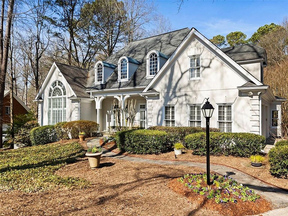 An extraordinary property located in Thornhill in Johns Creek; a city consistently ranked as one of the best places to live in Georgia. This move-in ready home has been completely renovated with a magazine-worthy interior, is situated on 1.03 acres and overlooks a professionally landscaped, treelined, private backyard. The beautiful brick-lined foyer leads into the open-concept, main level, boasting brilliant natural light, hardwood floors, and high ceilings throughout. Designed for indoor and outdoor living, this stunning home can accommodate intimate family dinners or large gatherings with ease. The gourmet kitchen features professional-grade appliances including a Wolf cooktop and built-in refrigerator, custom wood cabinetry, a large island with ample seating, and overlooks the sunlit keeping room with gas fireplace and bay windows. The sunroom, featuring beautiful brick flooring, floor-to-ceiling arched windows and two sets of French doors, artfully connects the kitchen to the generous outdoor living space and the two-story great room with soaring ceilings, built-in bookshelves, a wet bar, and marble fireplace. The oversized primary suite on main, with sitting area includes custom built-ins, DUAL master bathrooms, and DUAL walk-in closets! Also on the main level is an incredible home office with vaulted ceilings and floor-to-ceiling arched windows, an open-concept dining room, and a powder room. The upper level features a private en-suite bedroom, 2 additional oversized bedrooms with a guest bathroom, and 2 additional large walk-in closets for storage. The spectacularly finished terrace level includes 2 large entertaining areas with trey ceilings, a floor-to-ceiling stacked stone fireplace, a full bar, and French doors opening to the private backyard. Also on the terrace level is an additional guest bedroom with a full bathroom, a fitness room/second home office/home theatre, and 3 generous rooms for storage. Thornhill, one of the areas most sought after swim/tennis communities, includes a clubhouse, park, pool, tennis courts, pickleball courts, playground, multi-acre green space, and walking trails along the Chattahoochee River. Conveniently located across from the Atlanta Athletic Club, just minutes to award-winning Johns Creek Schools, private schools- Wesleyan, Cornerstone, GAC, Perimeter Church and School, Jones Bridge Park, fine dining and upscale shopping at The Forum Peachtree Corners, and easy access to GA-400 and I-285.