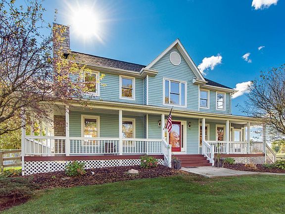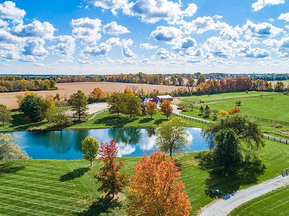 Amazing horse farm located on over 14 glorious acres- A paradise for horse owners! 4 bedroom home with wrap around porch overlooking fishing pond. Home has been updated with hickory hardwood floors on the 1st floor. Open kitchen with breakfast island features granite countertops & new backsplash. Full basement is perfect for storage or additional living area. Current owner has renovated barn to include 5 (12 x 12) stalls w/ Lucas Equine fronts, fans, & windows plus 1 12 x24 foaling stall. 70 X 200 irrigated riding arena. The footing, consisting of high quality sand, geotextile felt & special fibers, allows proper drainage & excellent cushion, perfect for all classes of riding. 10 acres of fenced pasture, hay barn w/ new electric, & driveway expanded to allow access to barn & arena.