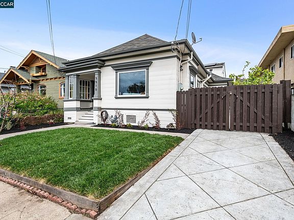 1910 Craftsman with gorgeous original details throughout in family-friendly neighborhood. Only two blocks from Dover Street park, easy BART and freeway access, and of course the culinary and cultural amenities of both Berkeley and Oakland. Enter into this stately 4 BR/2 BA home and feel like you have stepped into a Fitzgerald novel. Rich wood paneling, solid heavy doors, high coved ceilings, and an ornate fireplace decorated with the most beautiful green tiles you’ve ever seen. This house is a jewel box of vintage discoveries: in a small office find a French window that takes up most of a wall, original oval brass door knobs, wood moulding galore, handsome built-in cabinets and bookshelves with glass doors. However, we also appreciate the convenience of the modern kitchen with quartz countertops and walk-in pantry, and the completely remodeled downstairs bathroom.