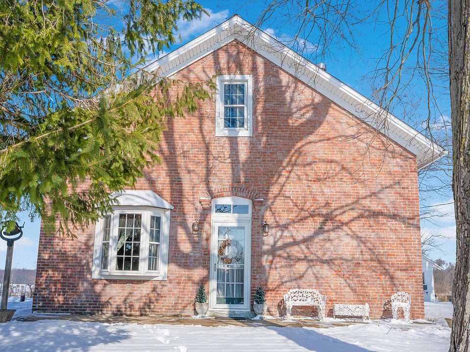 This '3-bricker' former School House converted to cozy and comfortable 4 bedroom 2 bath home. Property includes original care takers cottage now a potting shed, a Newer build one car garage and a root cellar now used to store wood. Sitting on a 1/2 acre of ground is surrounded or protected farmland, by way of an Agricultural Easement- Also included is a Briggs & Stratton whole house generator.